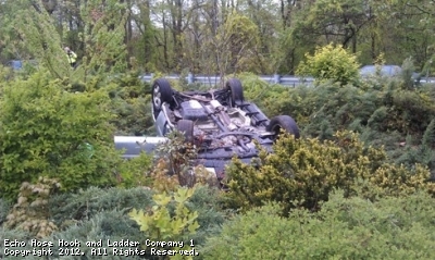 At approximately 1300hrs, companies 1 and 5 were dispatched to the area of 188 Leavenworth Road for the motor vehicle rollover. Upon arrival, the crew of Tower 7 found a single car in a ditch that had rolled over several times. The occupant was able to self extricate with the assistance of PD and EMS.