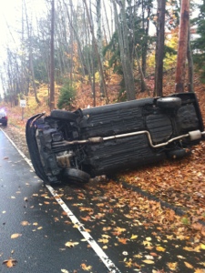 Shortly after returning from our first call of the storm, companies 1 & 5 were dispatched to Howe Ave for the reported mva rollover with entrapment. E2 behind car 6 arrived to find 1 car on its side with no entrapment. E2 and car 6 remained on scene providing traffic safety along with Shelton pd. Echo Hose Ambulance assessed one patient.